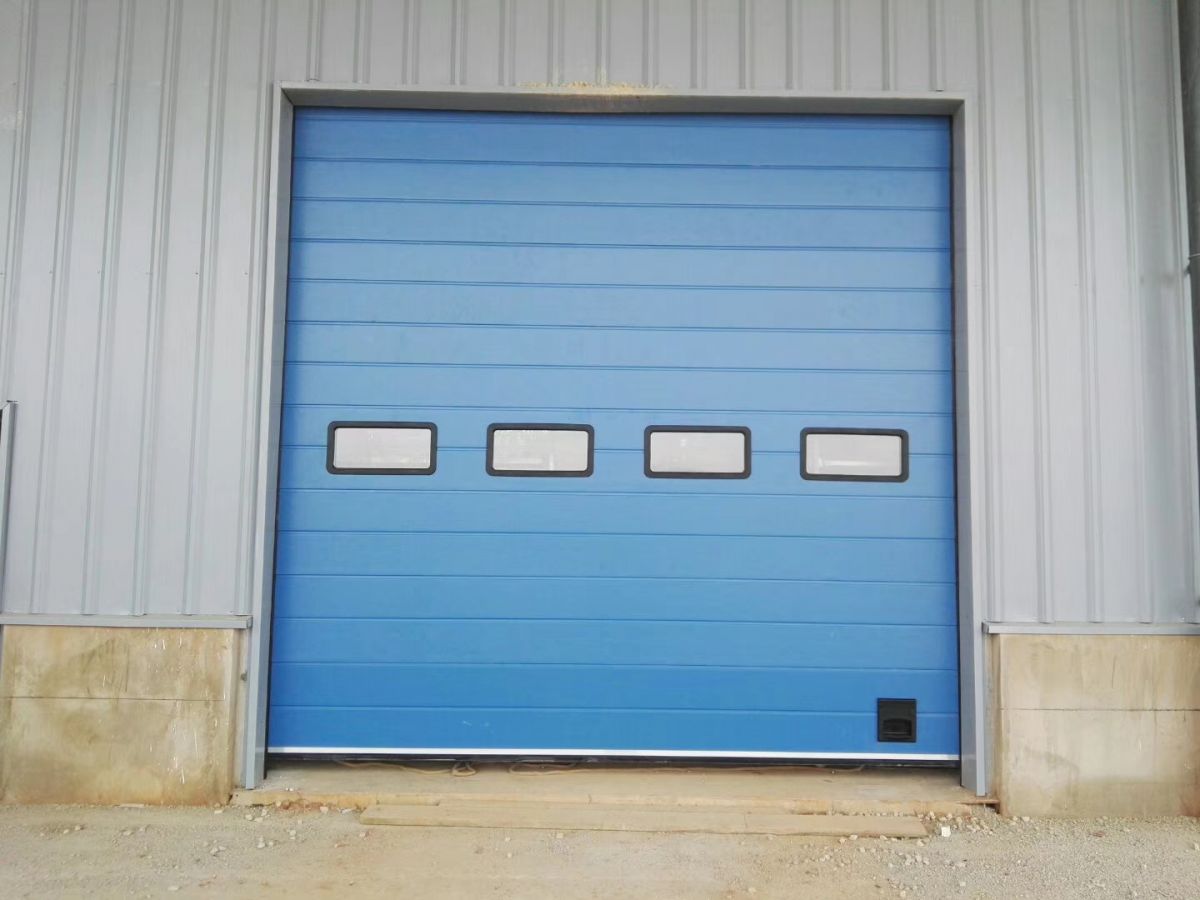 提升门门板采用0.28mm-0.476厚度以上彩钢板,内填充40mm/50mm/75mm/100mm厚度聚氨酯,门板具有隔热、隔音、保温等优点,还可以添加阻燃剂。也可以采用钢材做骨架,填充苯板或岩棉保温,外面覆盖钢板制成,表面防腐防锈处理,大型提升门厚度不小于100mm。